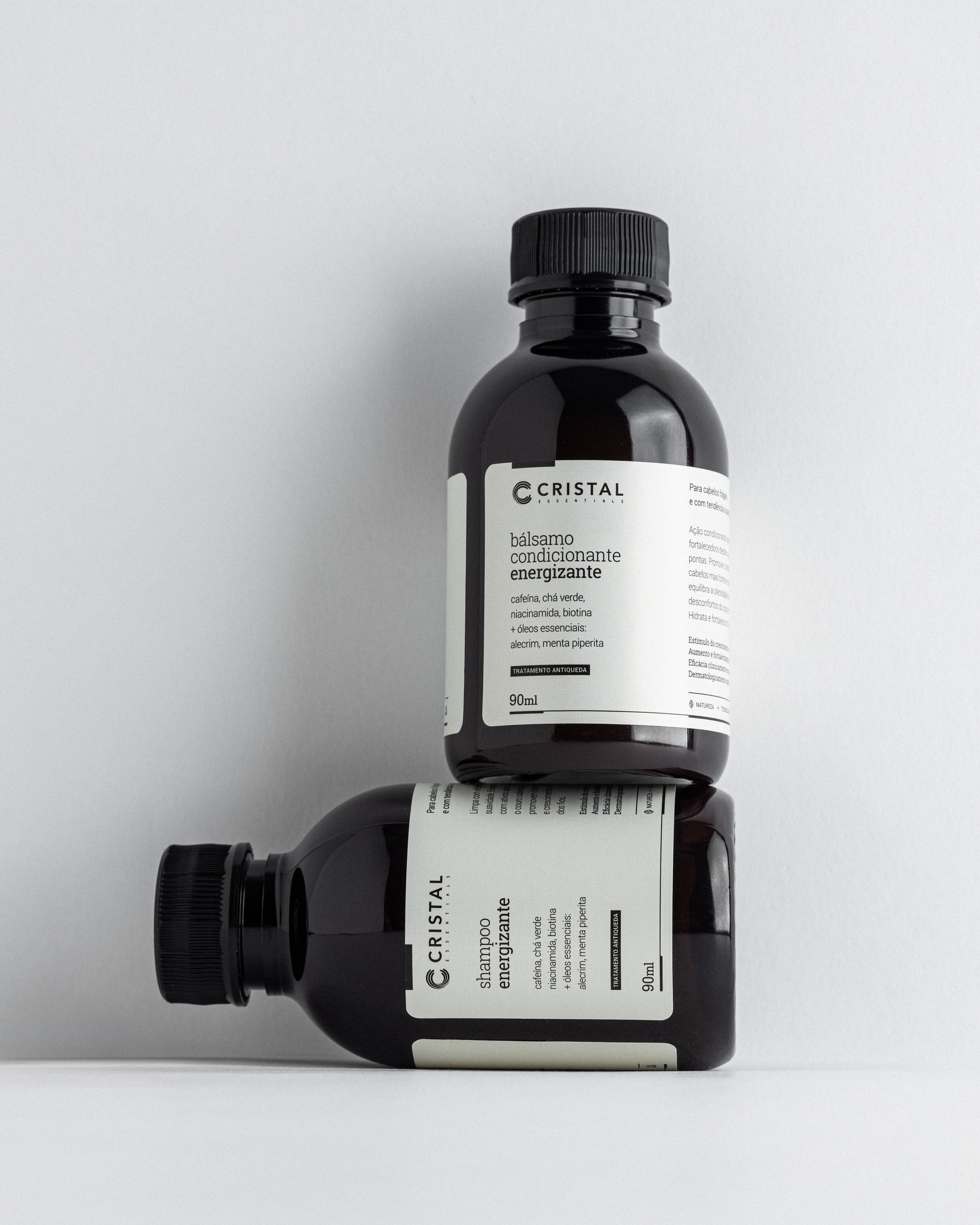 Shampoo Energizante – Aplique no couro cabeludo molhado, massageando suavemente. Enxágue bem.